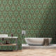 Transform your living space with the lush elegance of the Verdant Peacocks Art Nouveau Wallpaper. This stunning wallpaper features an intricate design inspired by the Art Nouveau era, showcasing majestic peacocks amidst a rich tapestry of floral and botanical elements. The vibrant color palette of deep forest green, teal, rose pink, and soft yellow creates a dynamic and inviting atmosphere.
