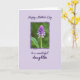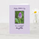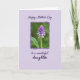 This card features a centered photograph of a striking purple flower cluster, surrounded by a soft, textured border that looks like a gentle wash of color. The bloom shows tightly packed deep violet florets at the top that fade into pale lavender and white near the base, each tiny tip touched with a hint of reddish-brown. A slender, bright green stem rises from below, set against a blurred green background that feels like a quiet garden moment shared with someone you care about ❤️. The main background is a calm lavender tone that keeps the whole layout soothing and cohesive. Above the flower, the words “Happy Mother’s Day” sit near the top in a deeper purple, flowing cursive-style lettering. Below the image, “to a wonderful daughter” appears in the same deeper purple and matching cursive-style type, centered to mirror the line above 🌼. The soft border around the photo has slightly uneven edges, like brushed pigment, framing the flower against the lavender field.