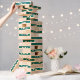 A towering topple tower custom-made with your preferred names featured on a verdigris backdrop. The family name can be inscribed on one side and the names of each family member on the other, or any other text of your choice!