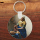 Johannes Vermeer The Milkmaid key chain. Oil painting on canvas circa 1660. A beautiful depiction of a Dutch kitchen, Vermeer’s The Milkmaid captures middle class northern European life with grace and mastery. The milkmaid pours milk from one jar into a larger pot surrounded by various loaves of fresh bread, a blue drape, and a basket. The woman herself wears a white headscarf, yellow bodice, and blue and red skirt with green sleeves. A great gift for fans of Johannes Vermeer, Baroque painting, and Dutch art.