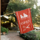 Simple and elegant open business flag for a hair salon or seamstress with a pair of scissors in white beneath OPEN written in elegant letters and your business logo against a vermillion red background. A clean, black and white open for business flag for a hair salon, barbershop, or similar printed with your logo and with thin white lines flanking the text and logo. Warm blood orange red open for business flag with white details you can personalize with your business logo.