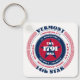 The Vermont State Keychain has a circular typography design with red, white, and blue colors on a white background. The text includes the state's name, capital, state abbreviation, resident's name, region, time zone, geographic coordinates, the year of its statehood, and the country - The United States of America. Unique patriotic gift idea.