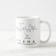Verna spelled out in amino acids as V E R N A (Valine Glutamic acid Arginine Asparagine Alanine) on a mug for the scientist in you.