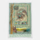 Kitchen tea towel with pale green and aqua vintage style illustration of woman with spring and Celtic images