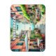 The watercolor painting captures a tranquil scene at a small café in Vernazza, set against a backdrop of typical Ligurian architecture with its colorful facades. The café, with its outdoor seating, is brimming with local life; patrons enjoy their coffee amidst pots of lush green plants and blooming flowers, adding vibrancy to the setting. The walls of the café are painted in soothing pastel shades, reflecting the soft hues of the town and harmonizing beautifully with the clear blue sky and the sparkling sea visible in the distance.