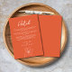 This Verona Sunset Orange Elegant Floral Wedding Hotel Enclosure Card showcases a delicate line art flower on a vibrant orange background, with modern typography and script calligraphy. It is fully customizable with the couple's names and hotel details. The formal design and wording will add a touch of elegance to your wedding celebration.