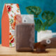Verona sunset orange floral pattern and quote Roasted Coffee box. Infuse your coffee ritual with the warmth of blooming sunshine. This elegantly designed roasted coffee bean box features a vibrant floral pattern in sun-kissed orange shades with soft green leaves, wrapping both the front and back in botanical beauty. The front iincludes a charming quote—“Brewed in sunshine, sipped in bloom”— in a frame, a gentle invitation to savor each cup. The solid orange sides complete the look with modern simplicity, making it a perfect blend of brightness and calm. Whether for gifting or daily delight, this box brings fresh energy to every brew.