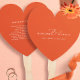 Keep your guests cool and informed with this modern Verona Sunset orange wedding program fan. Perfect for outdoor, summer, and garden weddings, this elegant heart-shaped fan features a sleek minimalist design with graceful calligraphy and easy-to-read typography. The warm sunset orange hue adds a bold yet sophisticated touch, making it ideal for modern, elegant, and rustic wedding themes. Fully customizable, this hand fan allows you to display your wedding ceremony details, order of service, or special thank-you message in style. A beautiful and functional addition to any wedding celebration.