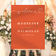 Welcome your guests in style with this elegant wedding welcome sign. Featuring a minimalist modern script design on a warm Verona sunset background, this foam board sign sets a sophisticated tone for your wedding day. The flowing calligraphy and refined typography create a timeless aesthetic that complements boho, rustic, and contemporary wedding themes. Personalize it with your names and wedding date for a beautifully customized entrance display.
