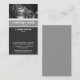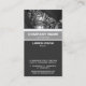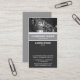 A business card template with an attractive vertical banded design in shades of grey and white with a decorative image texture area at the top. Company name and business type on the main band with Name, title and other address and contact details below, The reverse side of the card has been left blank with a mid gray flat color. This can be left blank or further customized.