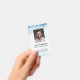 Modern vertical employee ID badge in a blue gradient design featuring a large photo area, editable name, title, company logo, and barcode. Perfect for corporate, retail, or office teams. Easy to customize for your professional needs.