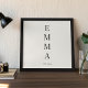 The Vertical Bold Name Stack stretched canvas print features a centered vertical layout with bold all-caps lettering and a small phrase est. 2024 below. Set on an ivory base with black text, the modern design delivers a sleek, editorial look that feels bold and expressive.