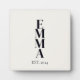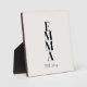 Vertical layout featuring bold serif letters in black stacked over an ivory background. The name vertically runs down the center with a small phrase "est. 2024" beneath, creating a clean, modern text-focused desk accent.