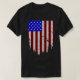 This image features a vertically oriented American flag with a distressed, grunge effect. The blue field with white stars is positioned at the top left, while the red and white stripes extend downwards. The entire flag has a worn, textured appearance with rough, irregular edges and faded colors, suggesting an aged or weathered look.
