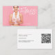 Create a stunning vertical personal trainer business card by simply adding your photo and professional details as well as a QR Code link direct to your website or social media! The front features white flirty script and the back features simple black font with a blush pink highlighted font, easily change the colors to fit your desired design ideas.