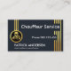 Over at the top is the business name "Chauffeur Service" with the contact details just below. To the left of this is a gold chauffeur logo you can use, alongside your prestigious name and a slogan caption which you can change.