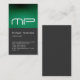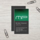Vertical Gray Green Stripe Monogram Business Card