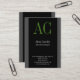 Vertical professional black grey green monogram business card