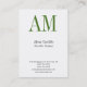 Vertical professional white green monogram business card