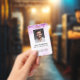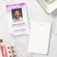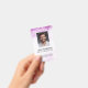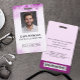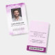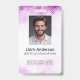 Eye-catching vertical employee badge with a soft purple gradient and customizable fields for photo, name, job title, barcode, and logo. Great for staff, visitor, or business identification needs.