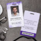 Professional vertical ID badge with a purple gradient design. Customize with your logo, employee photo, name, title, and barcode. Great for offices, events, schools, and secure building access.