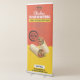 Make your culinary brand pop with this eye-catching vertical retractable banner! Featuring vibrant, high-resolution images of mouthwatering dishes, bold typography, and customizable sections for your logo and contact info, this banner is ideal for grabbing attention in any food-focused setting.