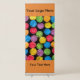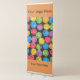 A customisable vertical retractable banner with an colourful, abstract image of different colours of chalk as seen directly from above The banner is customisable with text to be added, and the background colour is changeable. The photograph can also be repositioned.