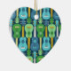 Vertical Ukuleles in blue and green against a dark blue background is a unique musical instrument design for string musicians, teachers and students.