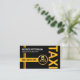 A black cover is accentuated by a stripe layer design with the vertical yellow "TAXI" signage on the right. At the upper left corner, nestled in the vertical lines is your prestigious name and job title. Contact details are placed in a yellow layer near the center with a gold chauffeur logo you can use at the end of it.