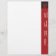 Turn the world on its side with this unique monogram letterhead. Your customized information runs up the vertical crimson bar on the right side of the paper. Your monogram stands out in matching red against the rich black box. Versatile enough for a variety of occupations: marketing professional, consultant, writer or anyone in the telecommunications or IT fields. Available in alternate colors with matching products.