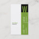 Turn the world on its side with this unique monogram business card. Your company name is striking against the lime green on the reverse, while your customized contact information runs up the vertical green bar on the right side of the card. A monogram sits against the rich black box while your name and title stand out on their own. Versatile enough for a variety of occupations: marketing professional, consultant, writer or anyone in the telecommunications or IT fields. Available in alternate colors with matching letterhead, labels and envelopes.