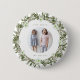 Photo button features a pretty Christmas pine and white floral painted wreath with center circle photo and customizable very merry text with your name. Shop this store for coordinating holiday items and gifts!