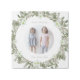 Rustic art features a pretty Christmas pine and white floral painted wreath with center circle photo and customizable very merry text with your name. Shop this store for coordinating holiday items and gifts!
