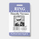 Personalize ring security agent badge with thank you note and photo area for your ring bearer. Custom colors