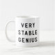 Start the morning off right with your VERY STABLE GENIUS mug. Whether you get your stability from coffee or some other caffeinated beverage... or watching politics or the news on TV -- this is the mug you want to grab. Perfect for those into politics -- or someone who's just generally smart (or who thinks they are) -- or those who have a great sense of humor. Great gift. Make the office laugh with this coffee cup.