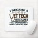 Funny job themed design for vet tech, veterinary technician or paraveterinary assistant. Humorous design says: I became a vet tech because veterinarians need heroes too, and features stethoscope with icons of pet animals. Veterinary technician novelty design is perfect coworker appreciation gift for vet tech week. Grab one as a graduation gift for a vet tech student, or as a present for the veterinary tech who takes care of your pet dog, cat or bunny