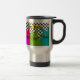 Vet Tech Travel Mug Whimsical Cats design, in green, pink and teal blue on a black and white polka dot background. A perfect gift for vet tech graduation.
