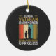 Veteran Grandpa ceramic ornament features a black silhouette of a veteran and child with text that reads Being a Veteran is an Honor Being a Grandpa is Priceless.