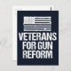 Veterans For Gun Reform postcard. American Veteran that supports sensible gun laws and regulations for gun control against gun violence. Support moderate gun control and ban of assault rifles and automatic weapons.