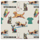 Veterinarian pattern with dogs, cats, ferrets, rabbits, parakeets, medical scrubs and stethoscopes.