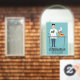 Veterinarian Man On Blue With Cute Animals & Text Window Cling