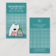 Vertical business card for pet care professional features a dog, cat, and bird on a teal background. Small white polka dot accents. Customize card with your own information. Design allows you to customize front and back text. Original design by S. Fernleaf Designs for Blessingartanimals.