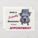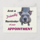 This appointment reminder postcard says, "Just a Friendly Reminder of your Appointment." Perfect for all your client's appointment needs, this postcard shows an adorable photograph of a handsome and gentle Blue Nose Pitbull named Sarge. Sarge is looking up at you with big wide eyes, ears flopping over his head and a comical expression on his face as he eagerly awaits someone to throw his ball for him. Easily customizable for all your appointment reminder needs.