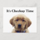 This reminder postcard says, "It's Checkup Time" A perfect postcard to remind your clinic's clients of their checkups. Featuring a darling photograph of a Golden Retriever puppy, this reminder card is easily customizable by filling in the back with all your client and business information.