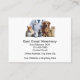 Veterinarian pet care appointment business cards combination presented on large format business card stock with and easy to read appointment template on the flip side and a graphic of a variety of pets.