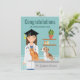 Congratulate a veterinary student on their graduation with the help of this personalizable design featuring Destei's original cute cartoon illustration of a veterinarian woman in an examination room of a veterinary clinic. The veterinarian is wearing a black graduation cap with a yellow tassel, a white laboratory coat, blue scrubs and she has a stethoscope around her neck. The veterinarian has brown hair and a smiling face expression.