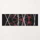 Vexation yoga mat. Vexation is an abstract and grunge design created by Anna M. Asbury and consists of red, black, and white lines on a black background.