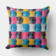 A bold and modern 3D geometric pattern throw pillow featuring repeating hourglass shapes in vibrant yellow, blue, pink, and white. With deep shading and high contrast, it creates a dynamic illusion of texture and movement.