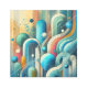 This vibrant abstract artwork features elongated, oval-shaped forms in varying shades of blue, teal, and white. Set against a dynamic backdrop of vertical lines and splashes of color, this contemporary composition radiates energy and motion. With its balanced combination of cool hues and vivid accents like yellow, orange, and pink, the piece creates an intriguing depth, ideal for modern spaces. Perfect for art lovers seeking bold, colorful wall art that captures the imagination and adds a lively touch to any setting.
