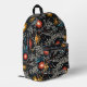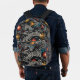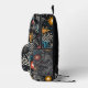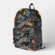 Immerse yourself in a dynamic fusion of color and form with this abstract floral backpack. Featuring stylized flowers in vivid red, orange, and yellow hues, complemented by flowing wavy lines and scattered blue and white dots, all set against a deep black background, this backpack exudes a bold and energetic aesthetic. The interplay of vibrant elements creates a striking contrast, making it an ideal choice for those seeking a unique and artistic touch. This backpack appeals to lovers of modern botanical art and abstract expression.